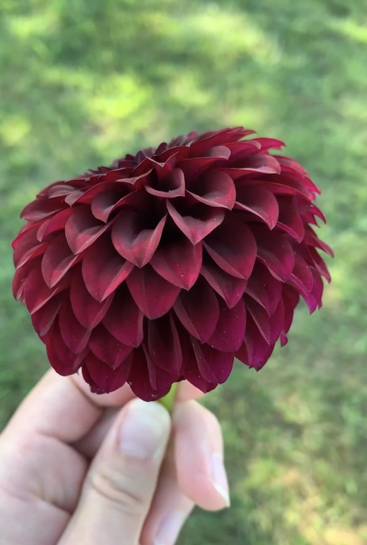 Shadow cat is a deep dark ball dahlia that has our hearts! Deep burgundy at the outer leaves with a dark chocolate (almost black) center. It’s even one of our earliest bloomers! It was one of our first dahlias on the farm and is definitely captivating out in the field or in a fall bouquet! Blooms are about 3-3.5”.